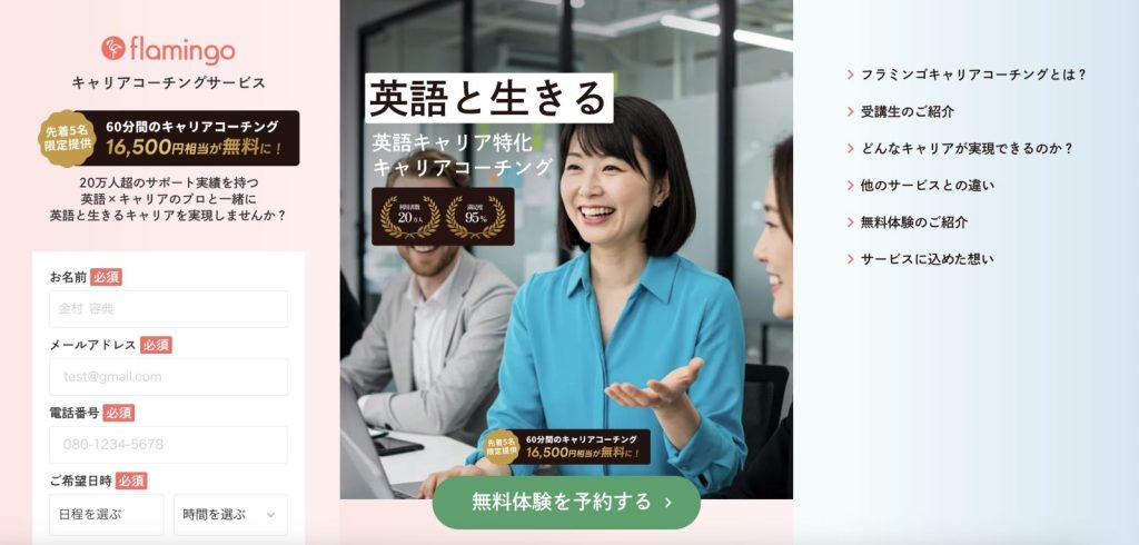 初めて利用する場合は、キャリアコーチングの無料相談を通じて、キャリアコーチングを体験したりサービス内容を確認するのが基本です。