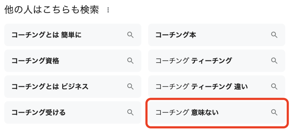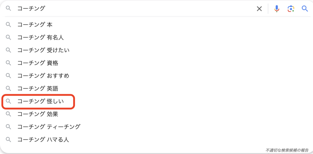 しかし、コーチングと検索をかけると「怪しい」「意味ない」といった一定のネガティブなキーワードが出てくることも事実です。