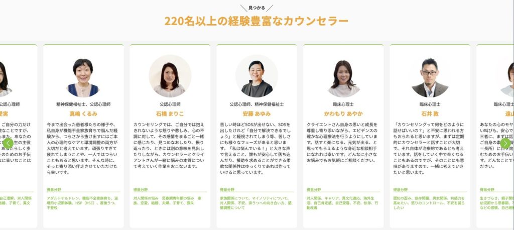 2024年4月時点で100,000件以上の相談実績があり、国内でも最大級のオンラインカウンセリングサービスとなっています。