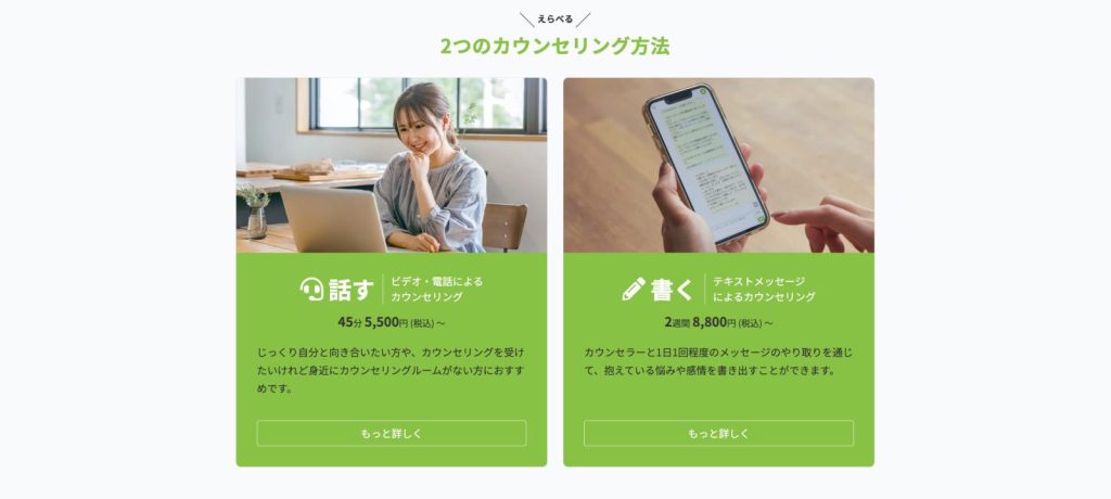 | コース/料金 | 話すカウンセリング:5,500円(税込)〜 書くカウンセリング:8,800円(税込) |