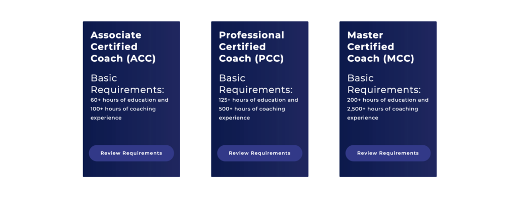 | MCC(マスター・サーティファイド・コーチ) | コーチング経験2500時間(うち2250時間は有償セッション) |