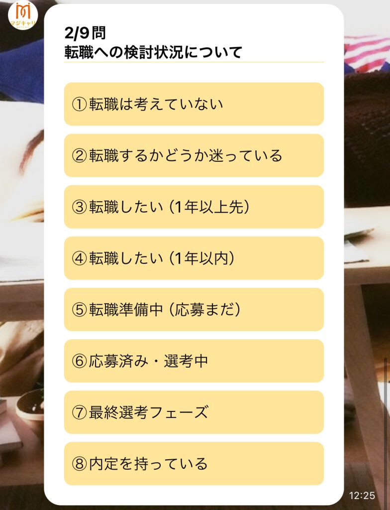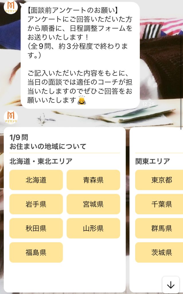LINE登録後、予約のためのアンケートが流れてくるため、回答していきましょう。