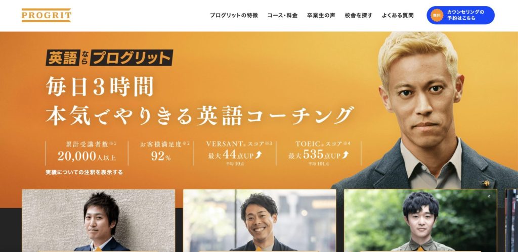 ビジネス英会話やTOEIC・TOEFLなど、本気で英語を伸ばしたい人のための英語コーチングサービス『プログリット(PROGRIT)』。