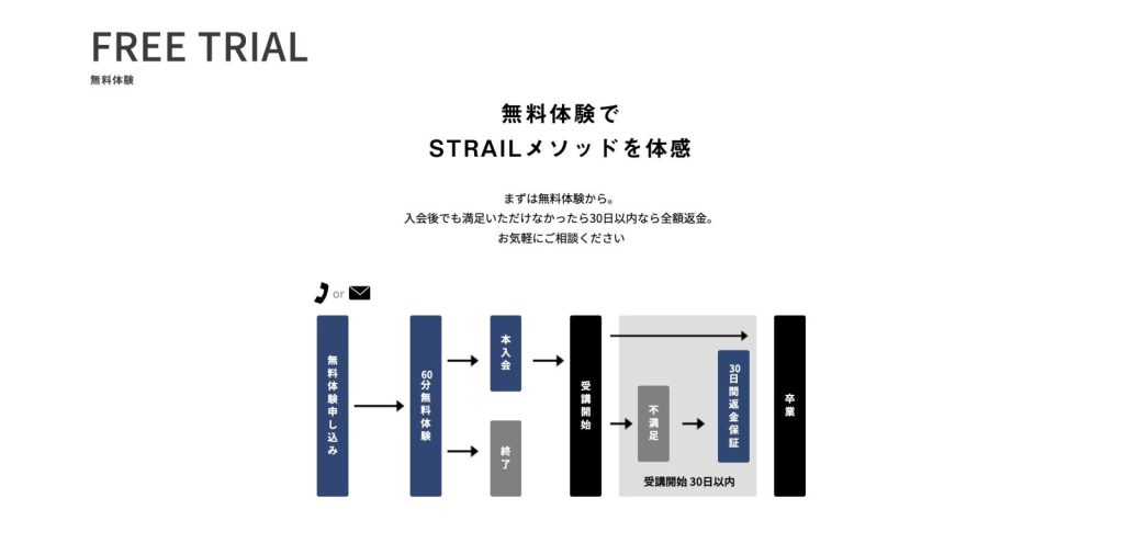 まずはSTRAIL(ストレイル)のホームページから、無料の体験に申し込みましょう。