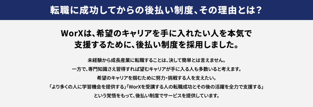 業界初の後払い方式のリスキリング転職サービスである『WorX(ワークス)』。