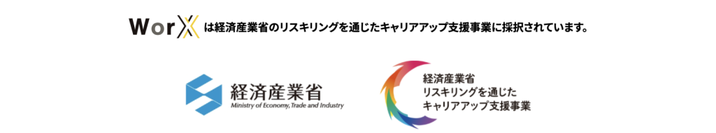 WorX(ワークス)のサービスは、経済産業省の「リスキリングを通じたキャリアアップ支援事業」の対象であり、所定の条件を満たすことで最大70%の補助金が出ます。