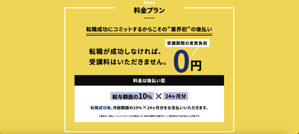 初期費用が0円となるため、気軽に未経験転職やスキルアップのためのコーチングを受けやすいことが特徴です。