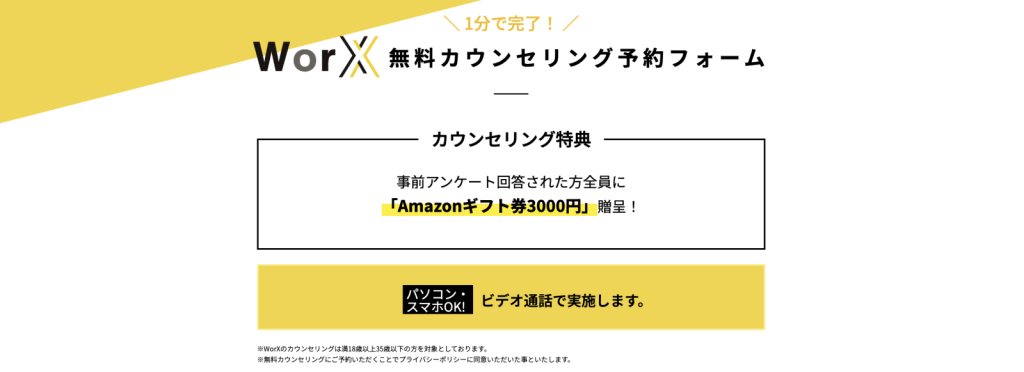 まずはWorX(ワークス)のホームページから、日程調整をして無料カウンセリングに申し込みをしましょう。